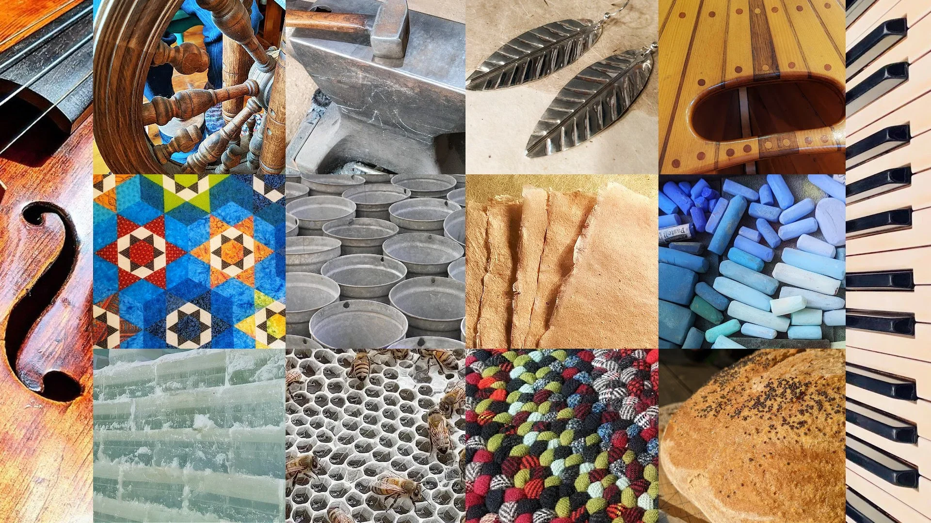 Fiddling With Traditions is a multimedia concert inspired by American folk arts and traditions. Created in 2022 by fiddler and tunesmith Gretchen Koehler, the project is based on her “Fiddling With Traditions” suite, which translates a wide variety of folk arts into her family music tradition. In addition to composing, Gretchen filmed and produced the multimedia show, enhanced by a backdrop of stunning film and photography. From heart-pumping musical arrangements to peaceful panoramas, her expressive soundscapes capture the spirit of rug braiding, blacksmithing, ice harvesting, quilting, silversmithing, papermaking, knitting, baking, painting, maple sugaring, beekeeping, and woodworking.